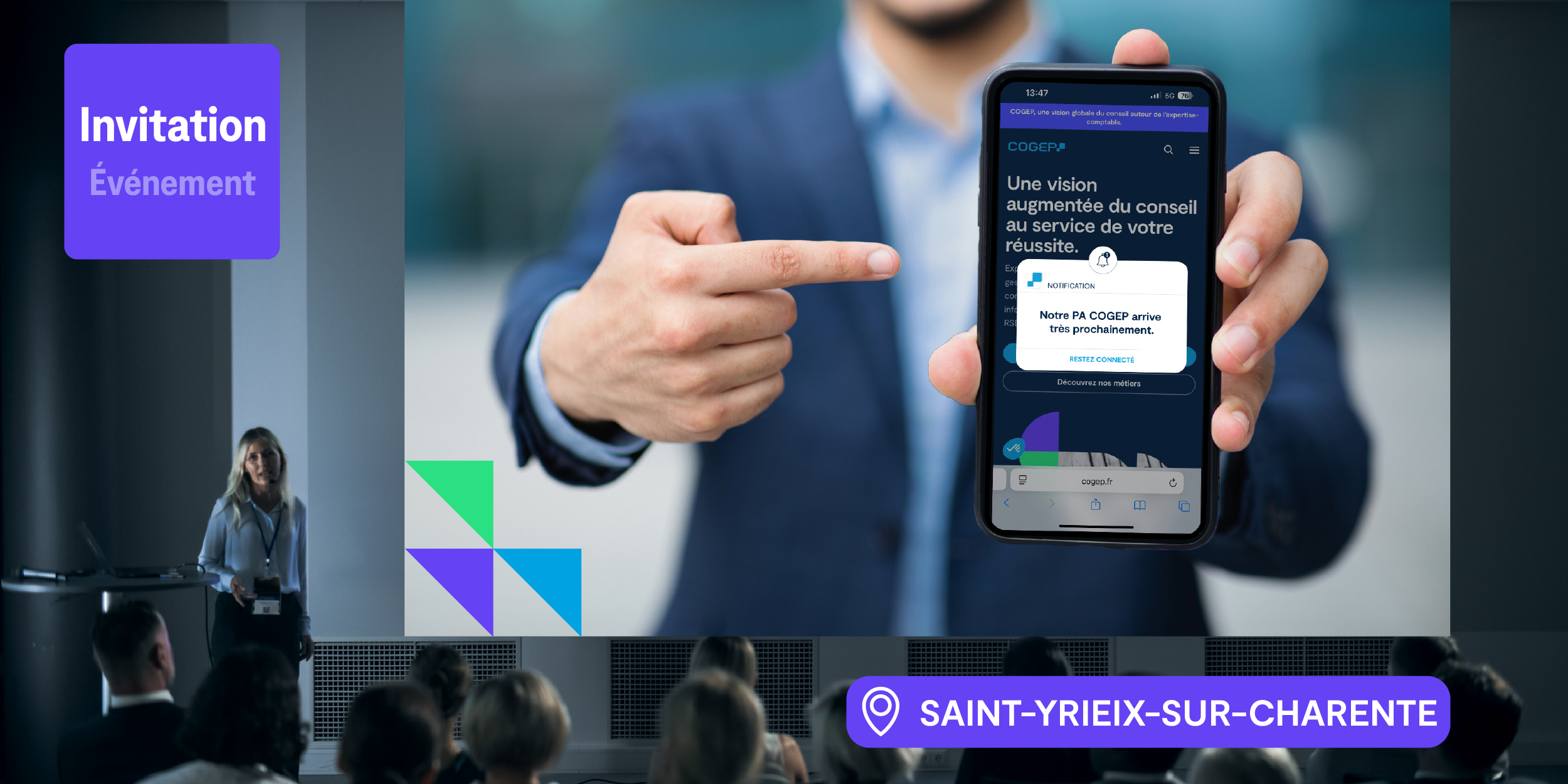 Participez à l'une de nos conférences organisée par votre expert-comptable de COGEP GOND-PONTOUVRE Gond Pontouvre :  - COMPRENDRE les impacts  - ANTICIPER les obligations  - DÉCOUVRIR les solutions adaptées à votre activité